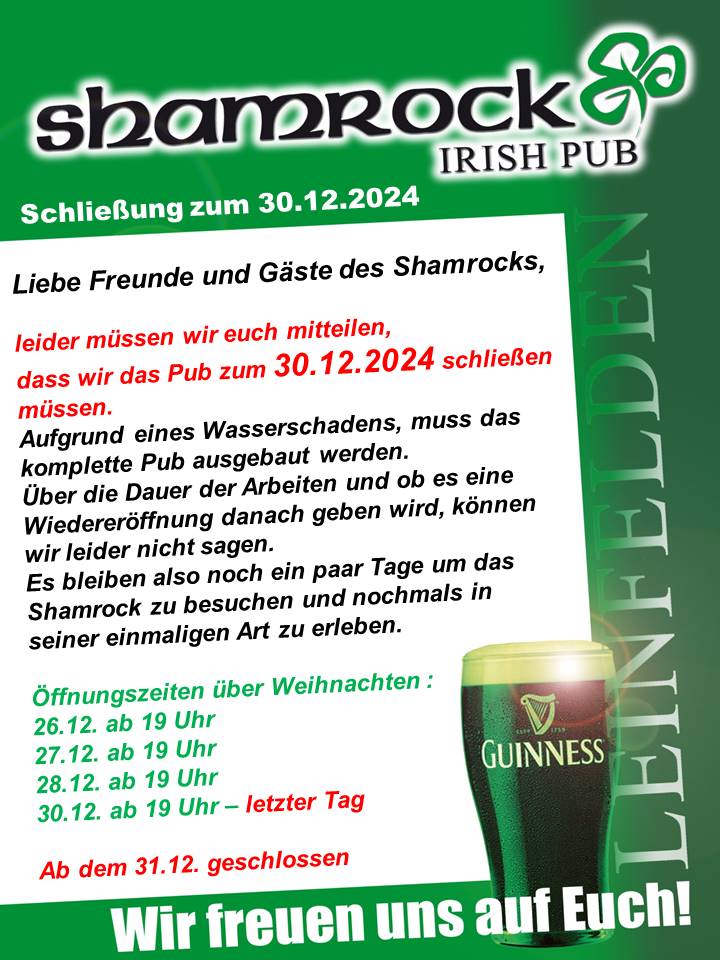 © 2018 Shamrock Irish Pub Leinfelden / Impressum / Datenschutz